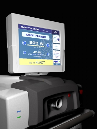 The Cyber TM laser is easy to use with a short learning curve. The double footswitch allows one to use two power outputs dedicated to the ablation / vaporization action and to the coagulation effect.