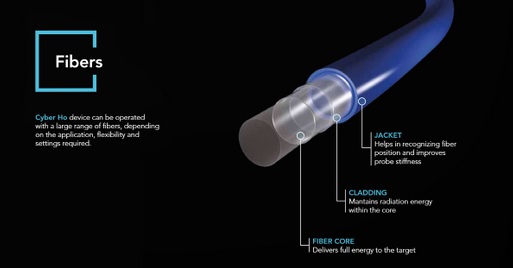 · The Cyber TM allows the use of forward-firing fiber-optic laser fibers which allows the surgeon to know, at all times, where the laser energy is being directed. Inadvertent damage to tissue resulting from lack of awareness of the orientation of side-firing laser fibers is a risk that is avoided with the forward-firing laser fibers that can be used with the Cyber TM.